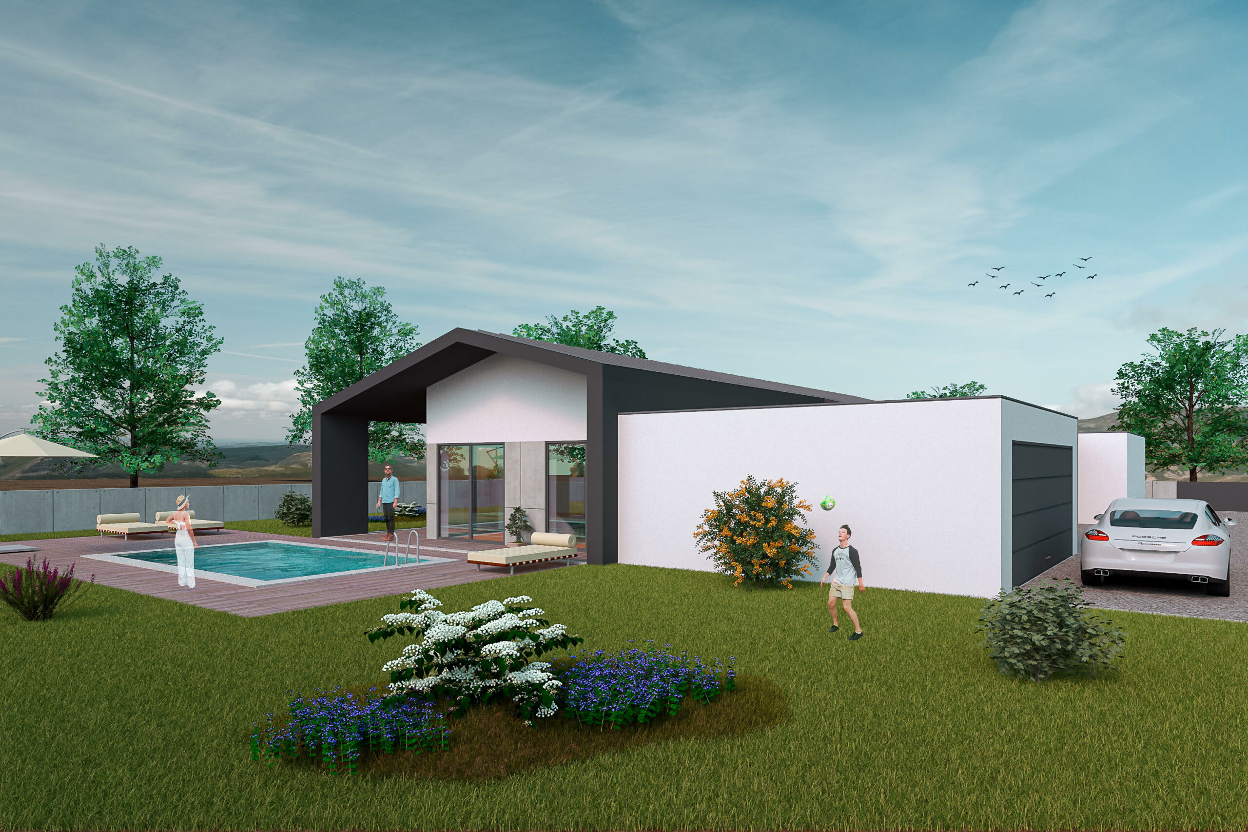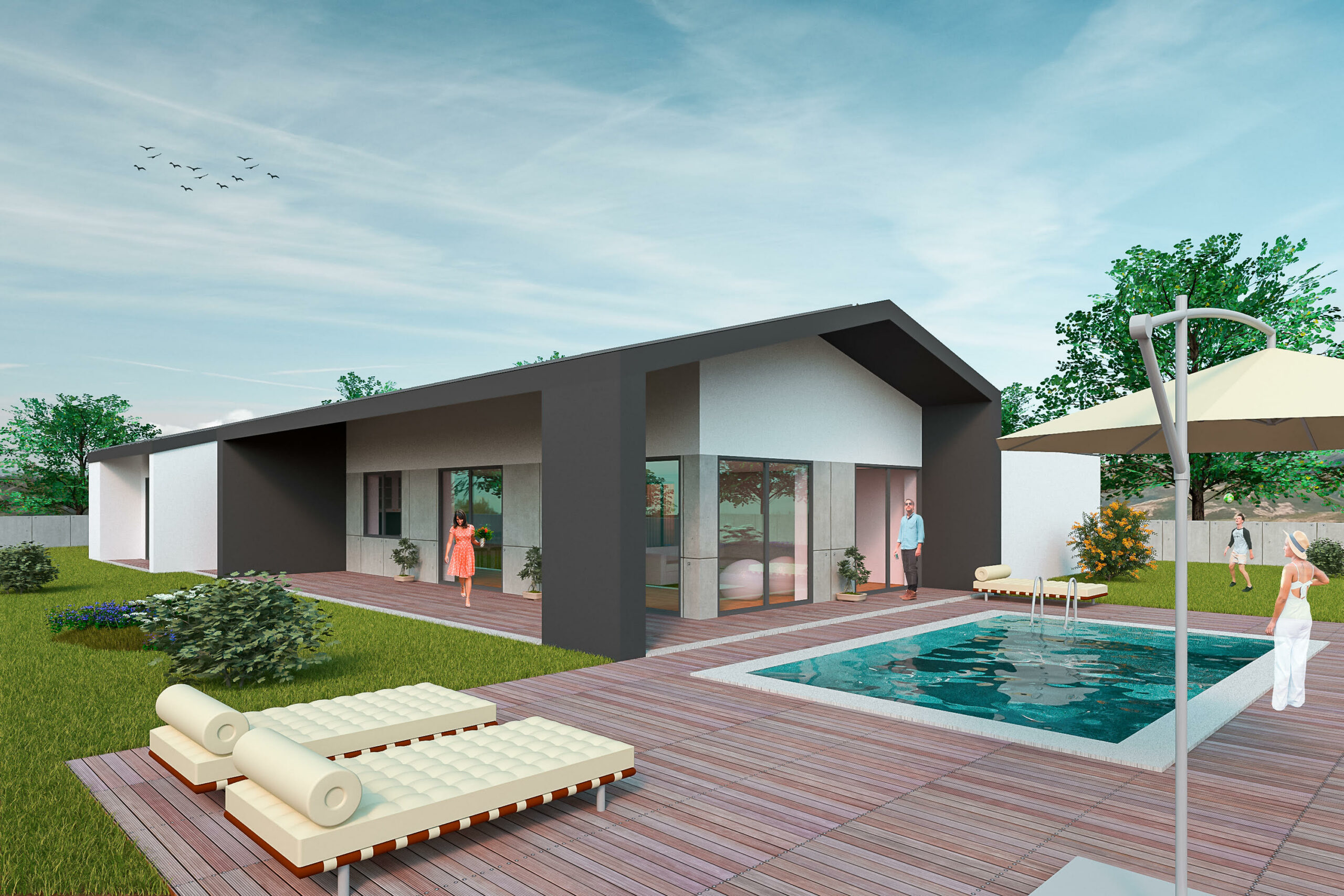 A parte social da moradia desenvolve-se para tardoz permitindo a utilização da piscina, orientada a Sul para permitir melhor exposição solar.